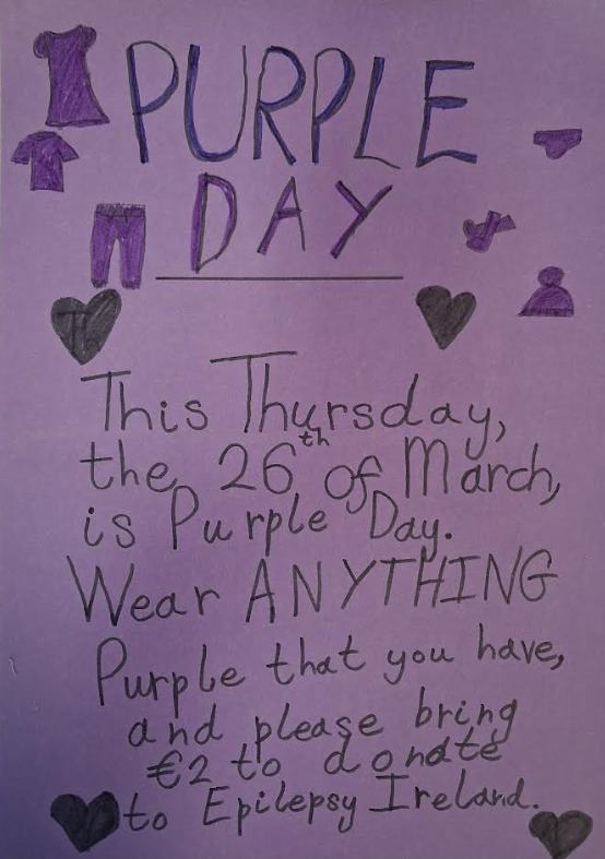 Congratulations to Anna who hosted Purple Day on 26th March 2026 in aid of Epilepsy Ireland.
